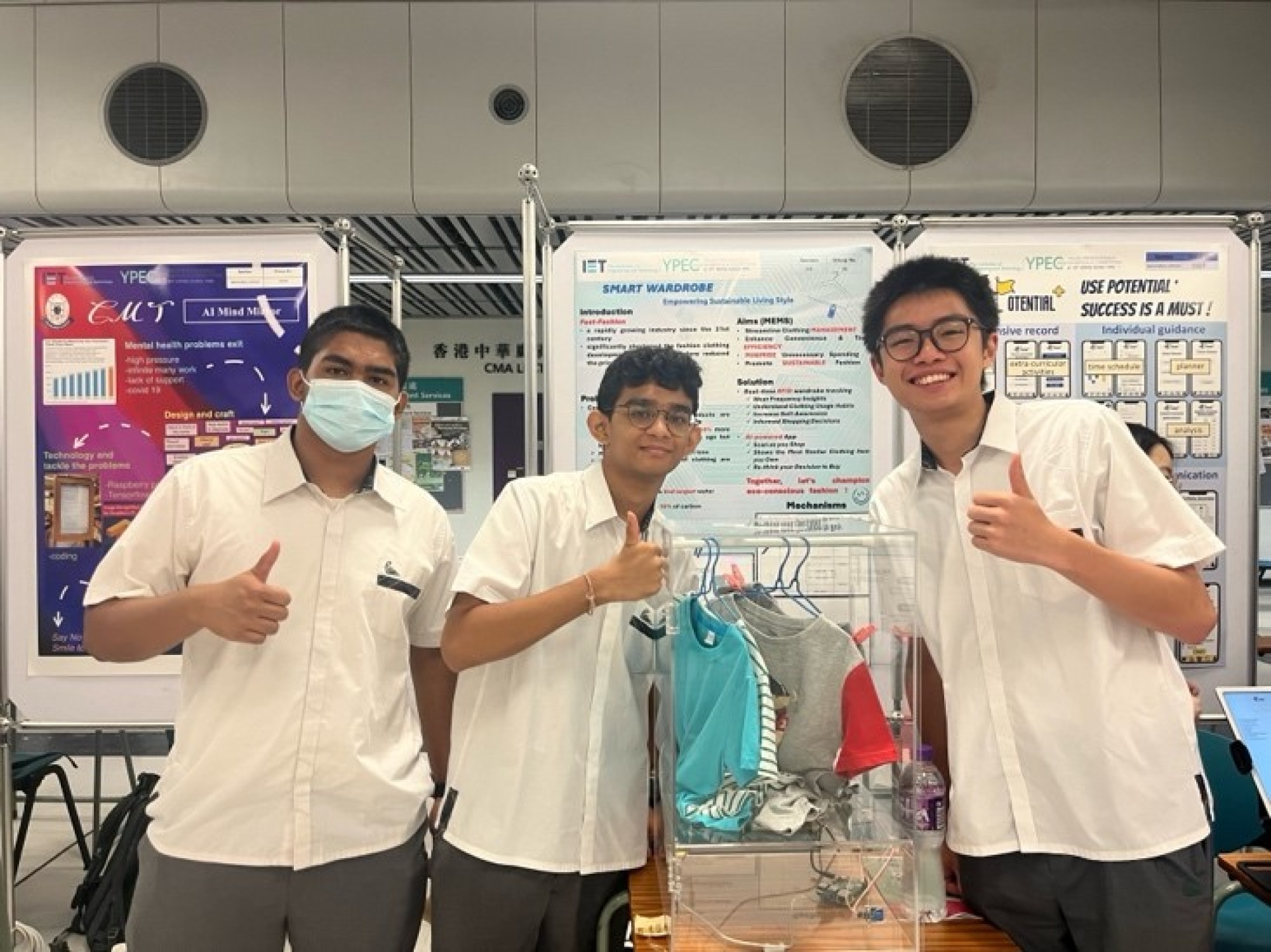 Our STEAM Invention Team participated in the Young Professionals Exhibition and Competition 2024 organized by the Institute of Engineering and Technology of Hong Kong (IET) on 21 July 2024. Our students won the First Runner-up and the Best Innovation Award in the competition with their innovative product – Smart Wardrobe. They performed excellently in both the product demonstration and Q&A sessions. The judges, composed of professional engineers, highly appreciated our students’ ability to make good use of technology and creativity to help promote sustainable development by reducing wastage in fashion industry. We are looking forward to more good ideas from our students.