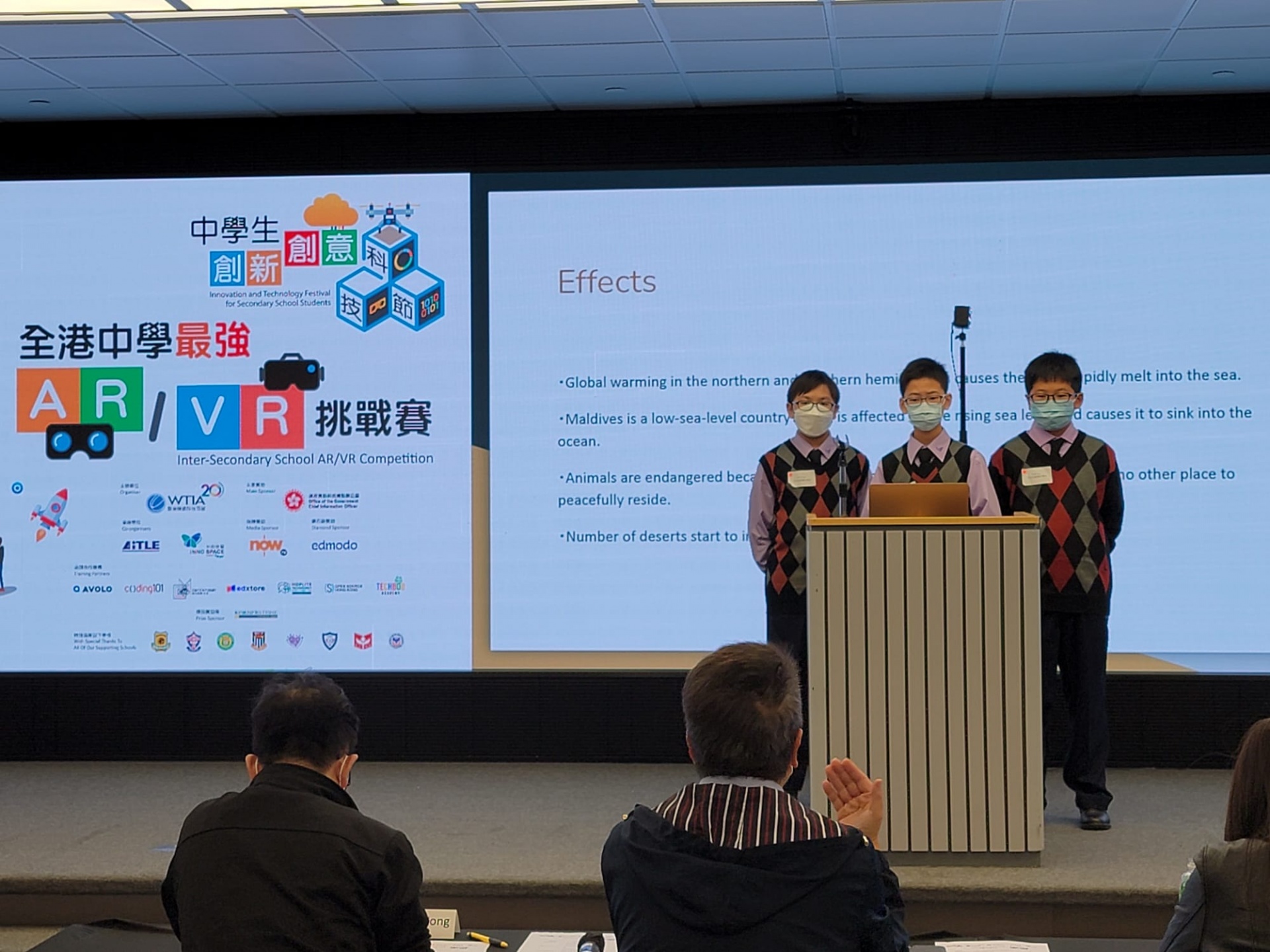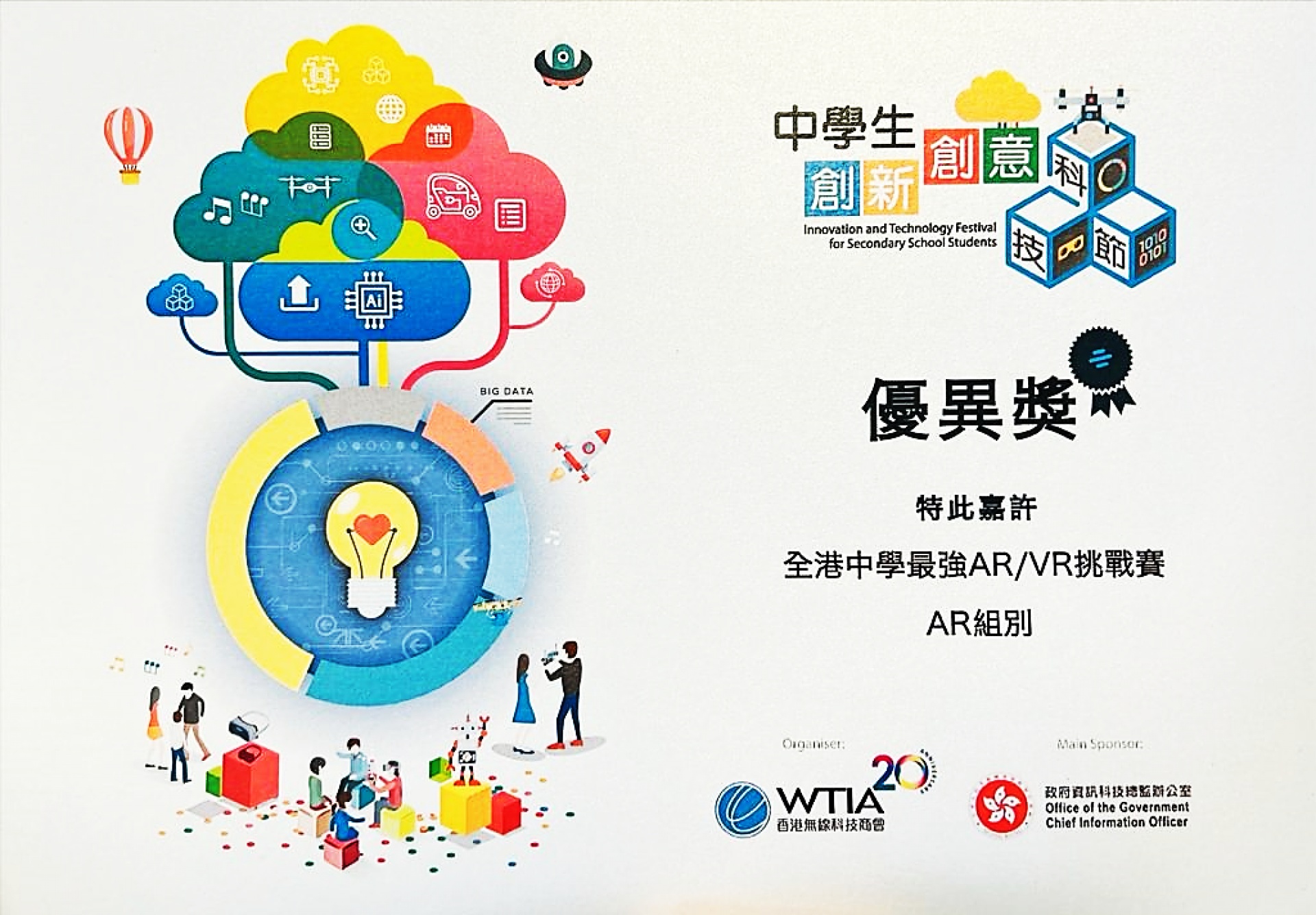 Our school ranked fourth place out of more than thirty schools in the Inter-Secondary School AR/VR Competition under the Innovation and Technology Festival for Secondary School Students on 18 December 2021. Our team members were the youngest, composing of our new Form 1 students.