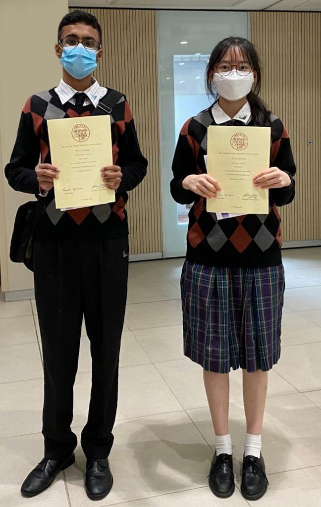 We are pleased to share with you that Lin Yanxi and Wong Shom of 6C were awarded Sir Edward Youde Memorial Prizes 2021/2022, which aims at recognizing senior secondary students with high standard of learning abilities and leadership qualities. Warmest congratulations to the awardees.