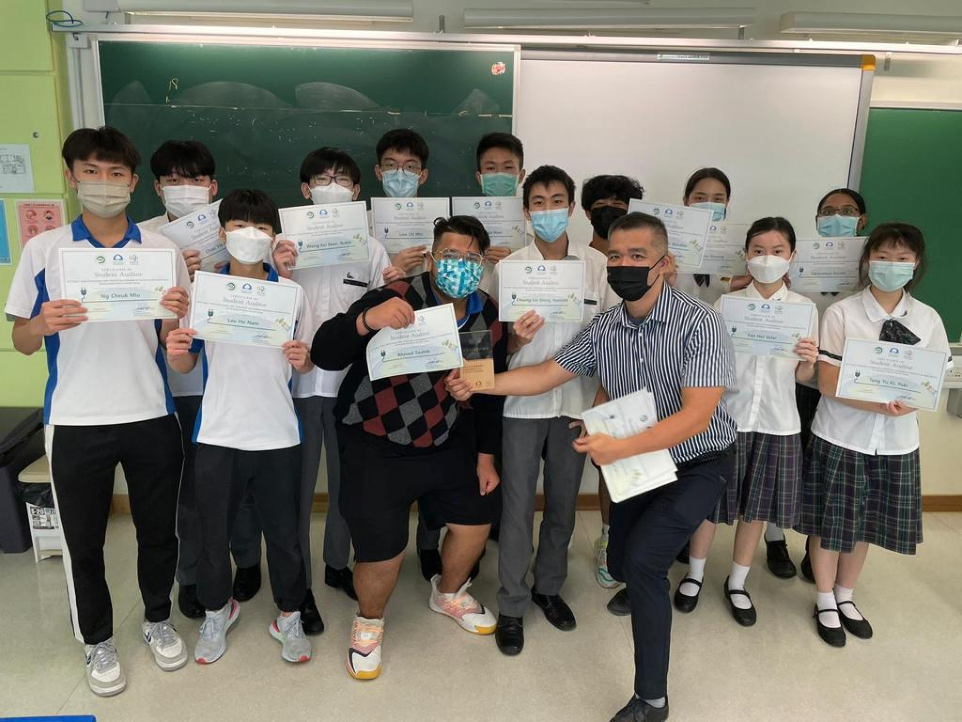 1.         Environment and Conservation Project: Secondary School Energy Auditing to Combat Climate Change - Champion (環境及自然保育基金項目: 氣候變化節能網上平台及中學生與公眾參與活動:校園用電審計 - 冠軍)