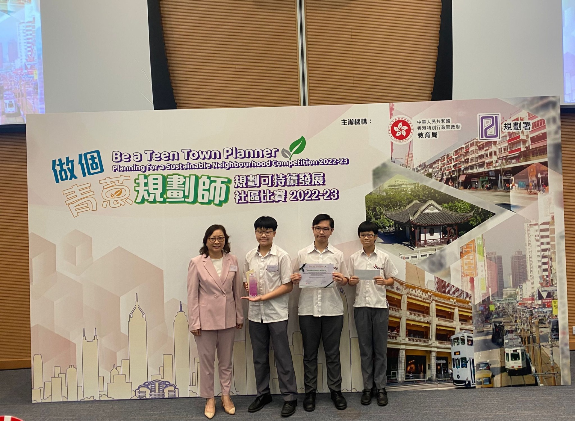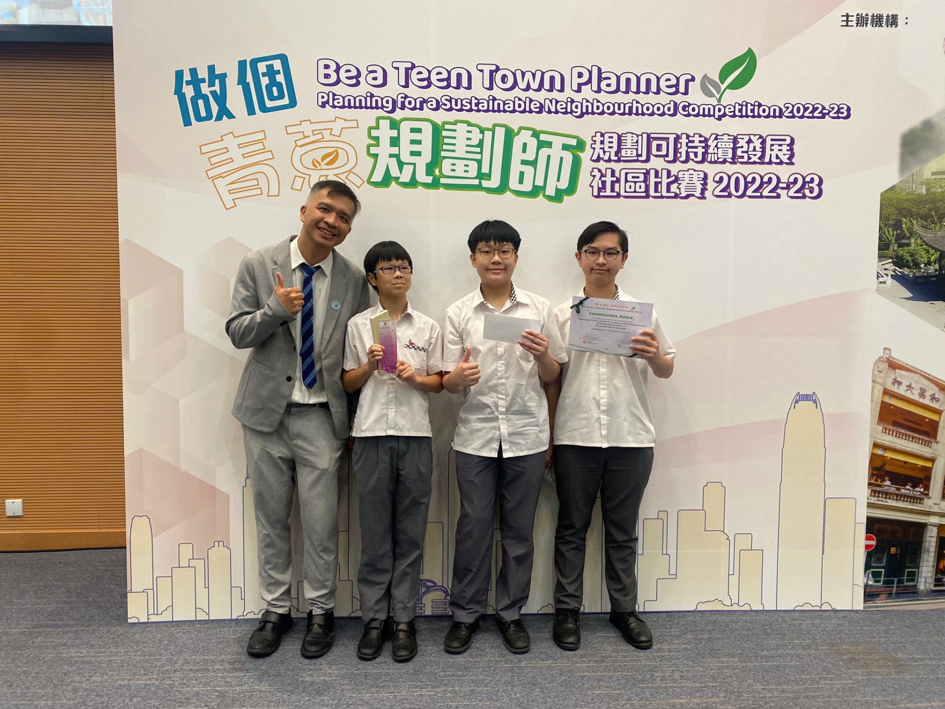 The Geography students have participated in the ‘Be a teen town planner—Planning for a Sustainable Neighborhood Competition (2022-23)’ co-organized by the Planning Department and the Education Bureau. Out of 170 projects submissions, our 1B students’ project ‘carbon neutral, vibrant, old-new exchange and well-being Kowloon city (Hong Kong edition of Odaiba)’ has been awarded the commendable award. The participants of this project are: