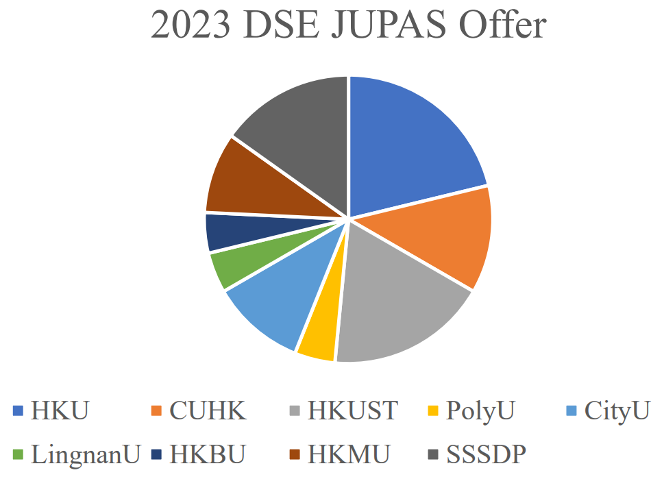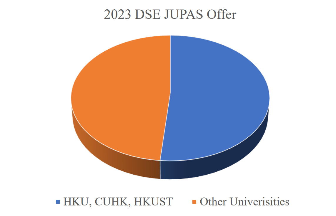 81.5% of the F.6 students have received degree offer from JUPAS, in which more than half of them entering HKU, CUHK and HKUST.