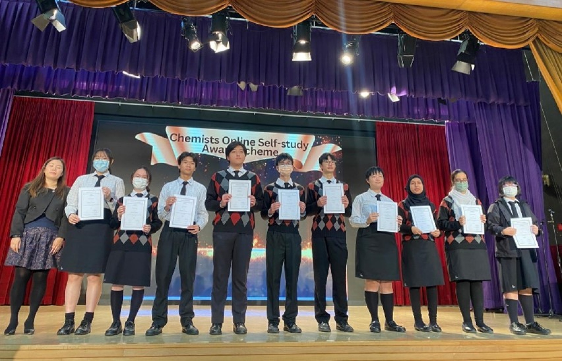 Our Form 4-6 Chemistry students participated in the Chemists Online Self-study Award Scheme Program, which is jointly organized by Hong Kong Virtual University and the Science Education Section of the Education Bureau. It is a student-centred learning program which provides more than 20 advanced chemistry online lectures. The aims of the award scheme are to nurture scientific literacy of senior secondary school students by providing them with an exposure to more advanced chemistry concepts.