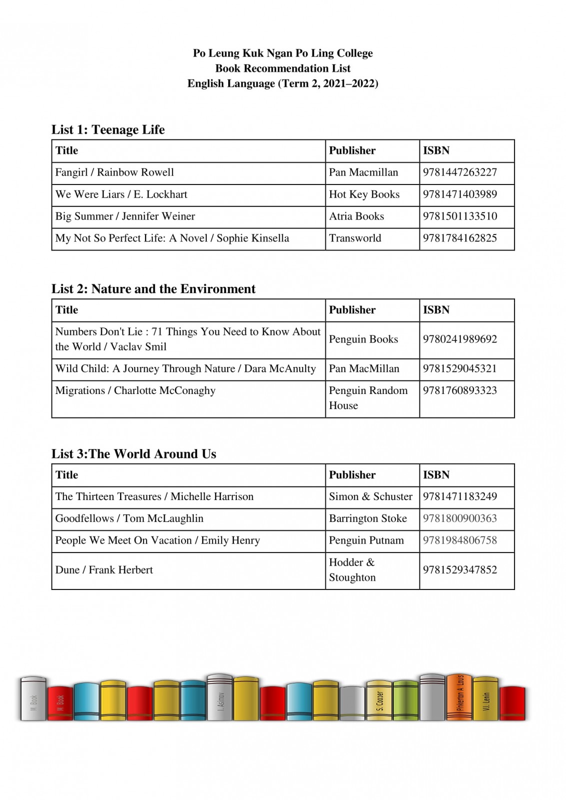 Recommended Book List 2025-2026