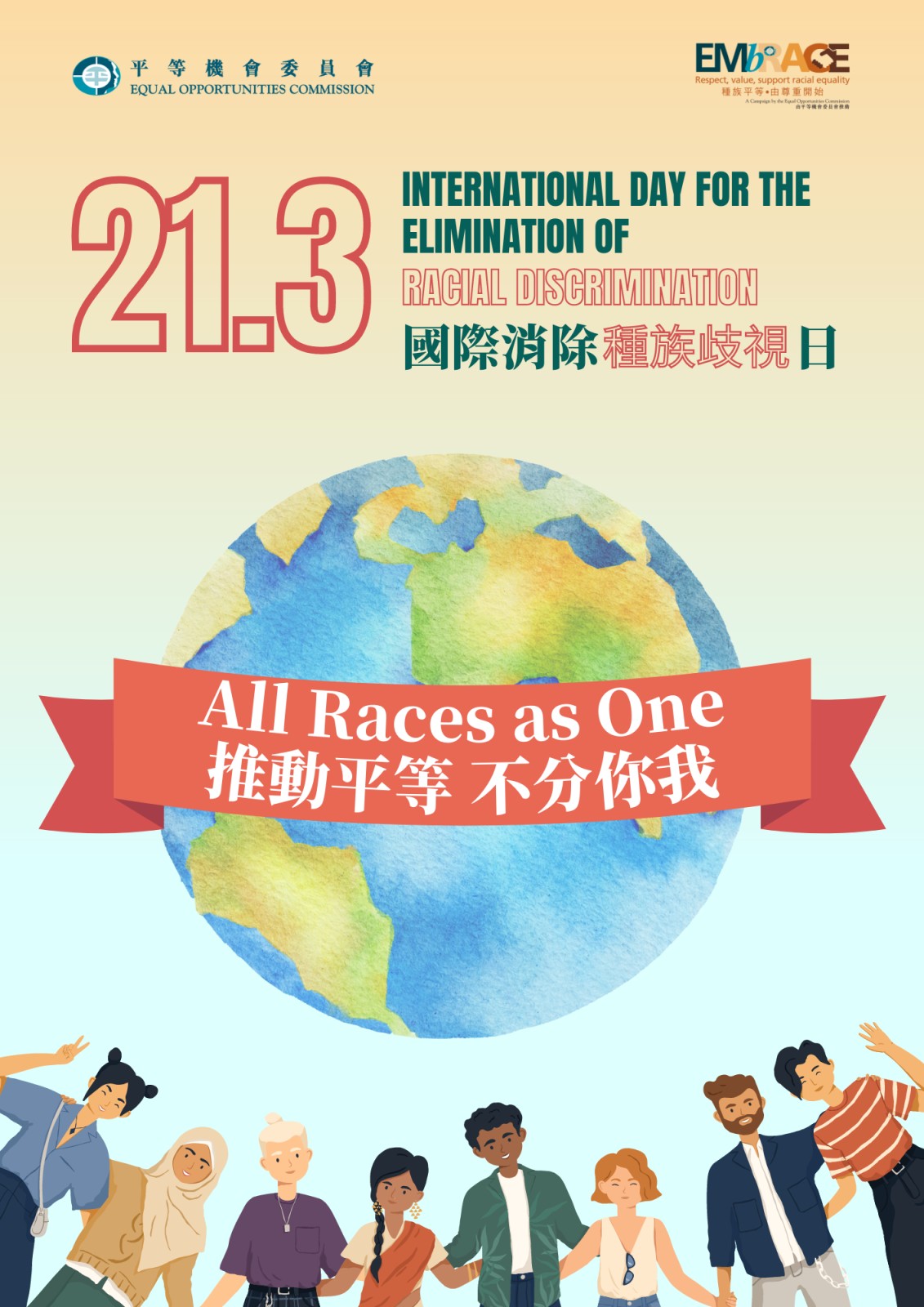 Our school is participating in the Equal Opportunities Commission's (EOC) 2023 Racially Friendly Recognition Scheme. 21 March 2024 is the International Day for the Elimination of Racial Discrimination (IDERD). Let's support this meaningful scheme.