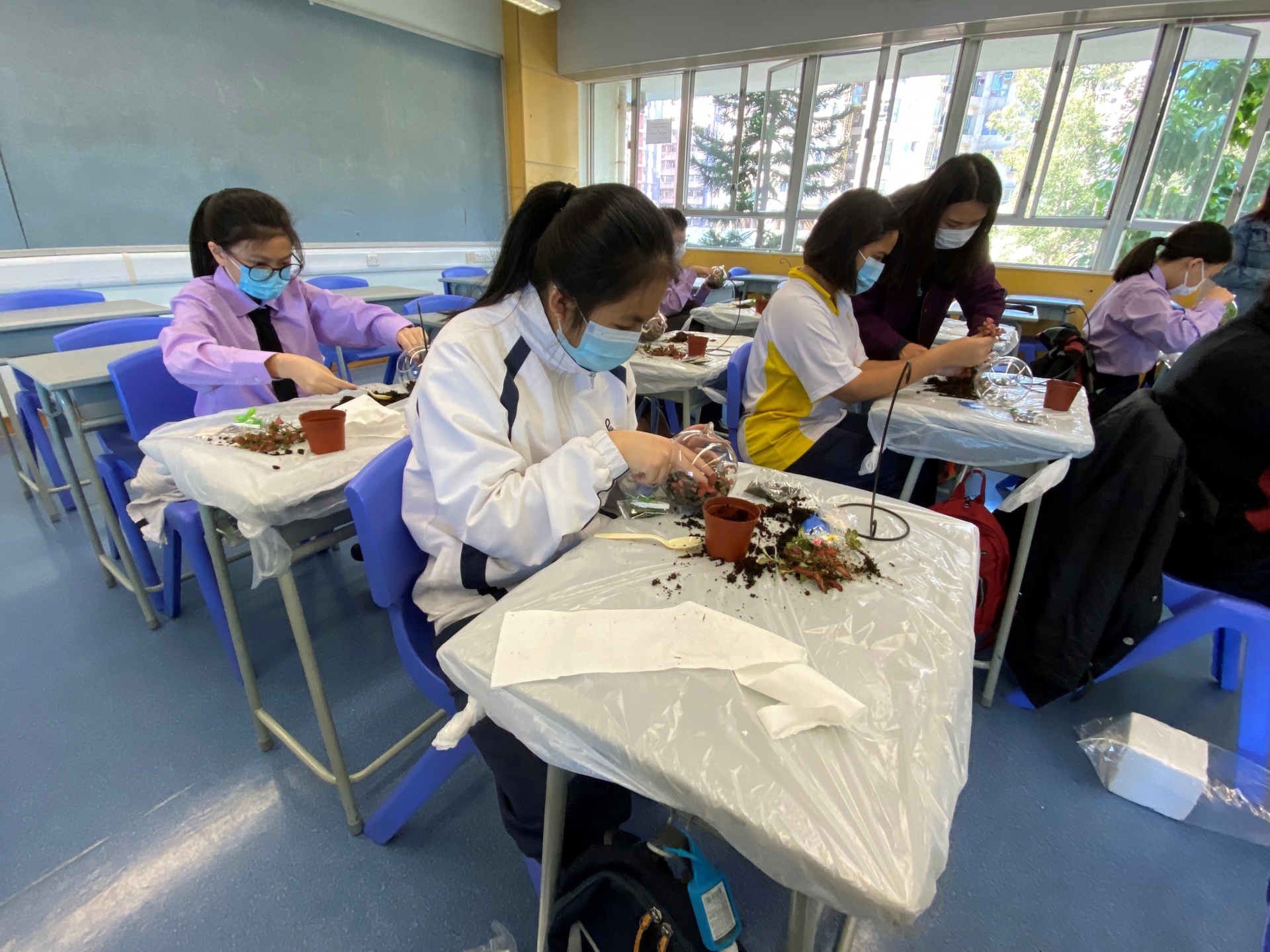 They made a plant terrarium (盆景) and wrote a thank you card to their family or friends. Students enjoyed the programme a lot and found it meaningful!