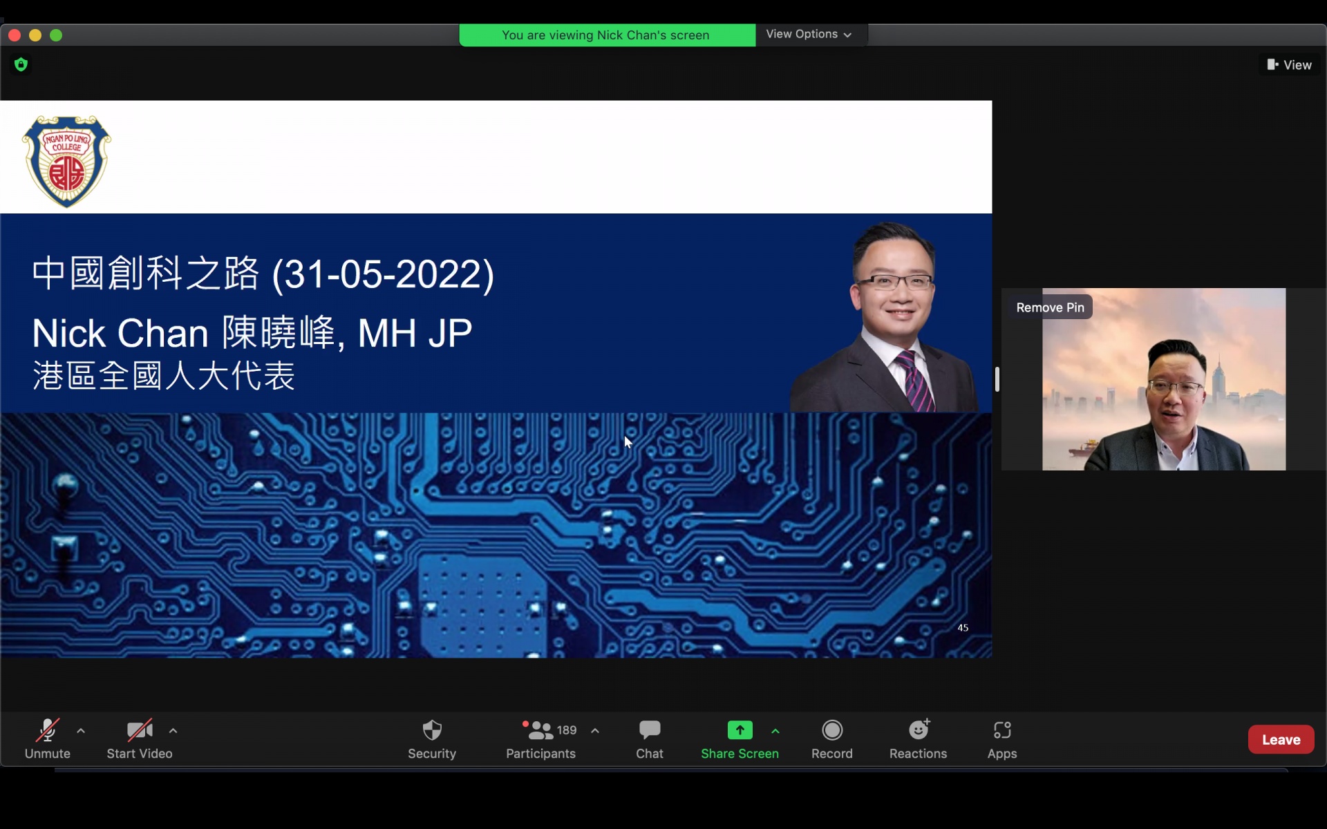 - Seminar on the Development of Innovation and Technology in China (中國創科之路)