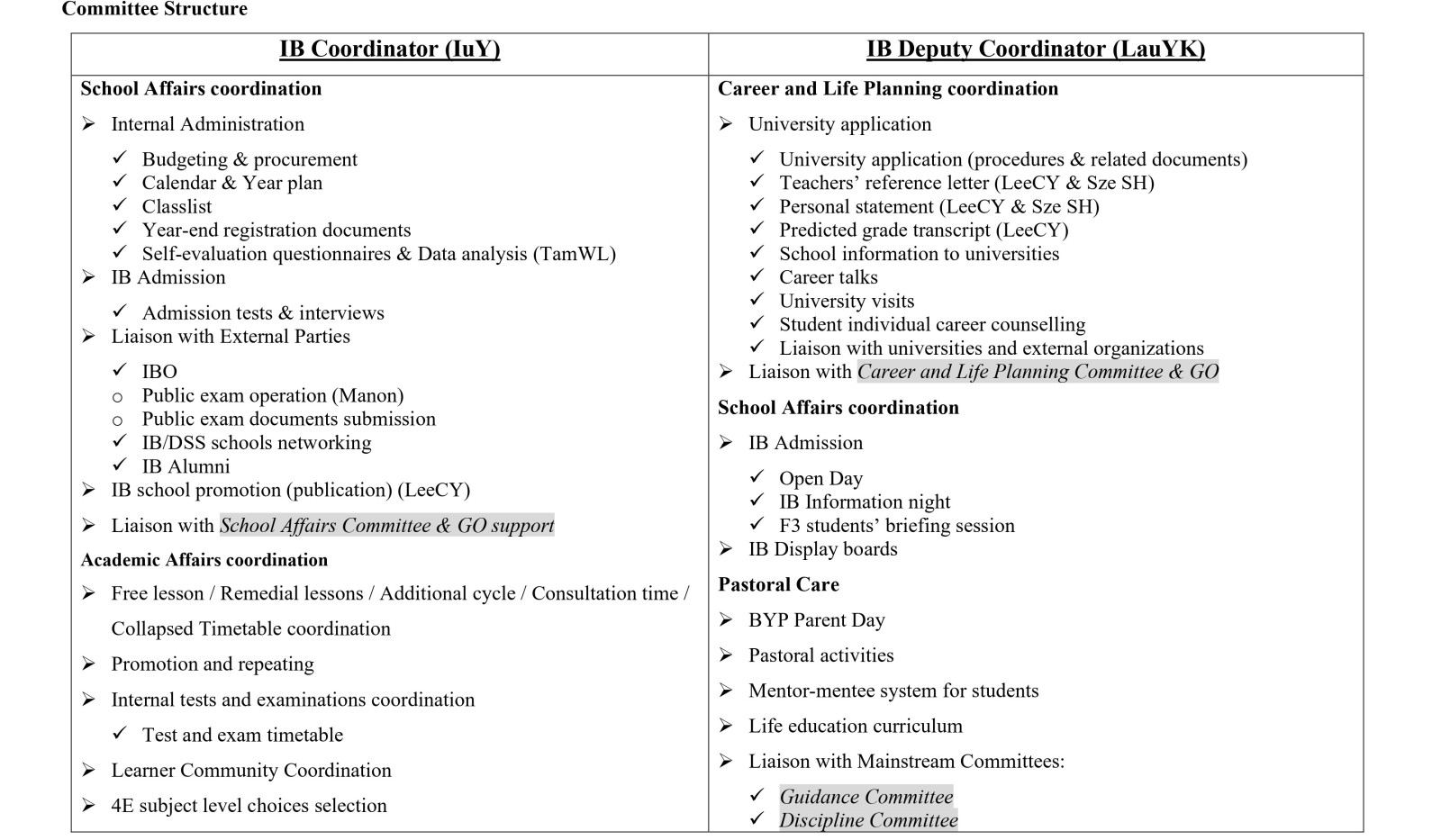 - International Baccalaureate Committee