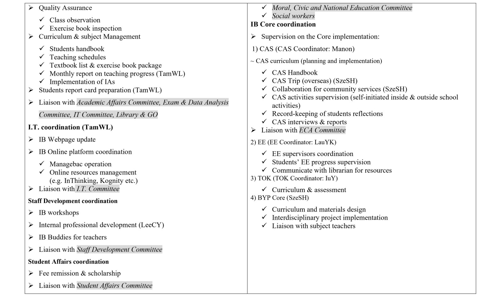 - Extra-Curricular Activities Committee
